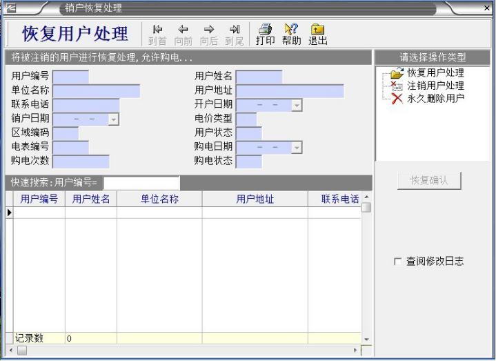 鼠標左鍵:,鼠標左鍵“銷戶恢復處理”,出現以下對話框: