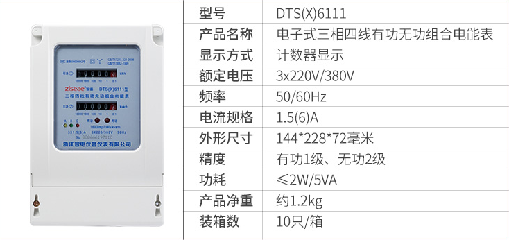 DTS(X)6111三相四線有功無功組合電表(計數器)