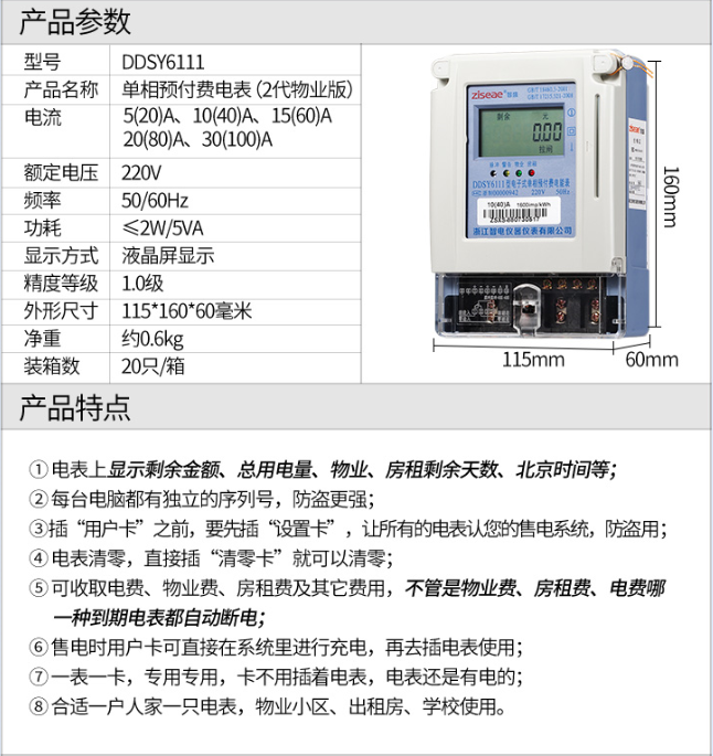 DDSY6111單相預付費電表(2代物業版IC卡插卡式電能表)
