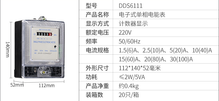 DDS6111型單相電子式電能表,由于采用集成電路和SMT制造工藝,使之測量準確度,穩(wěn)定性等均得到了可靠保證.適用計量額定頻率為50Hz,額定電壓為220V的單相交流有功電能.