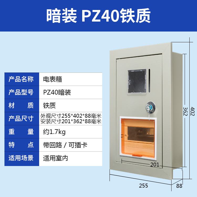 PZ40單相電表箱 鐵質(zhì) 1戶 暗裝